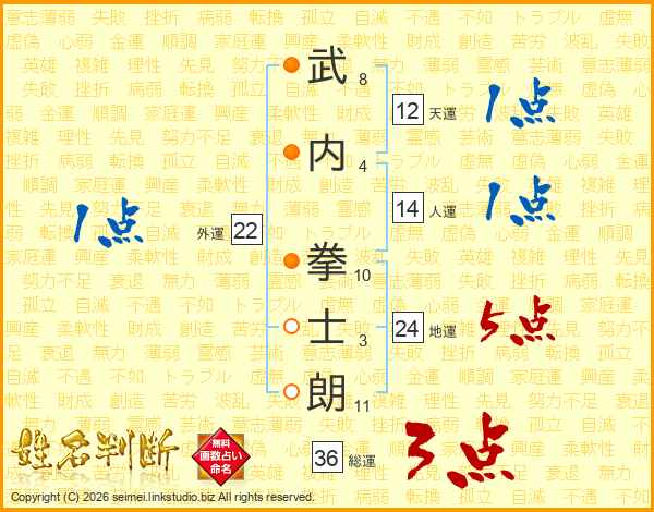 武内拳士朗さんの総運は36画の3点!