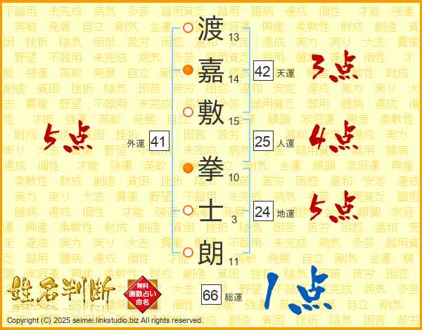 渡嘉敷拳士朗さんの外運は41画の5点!