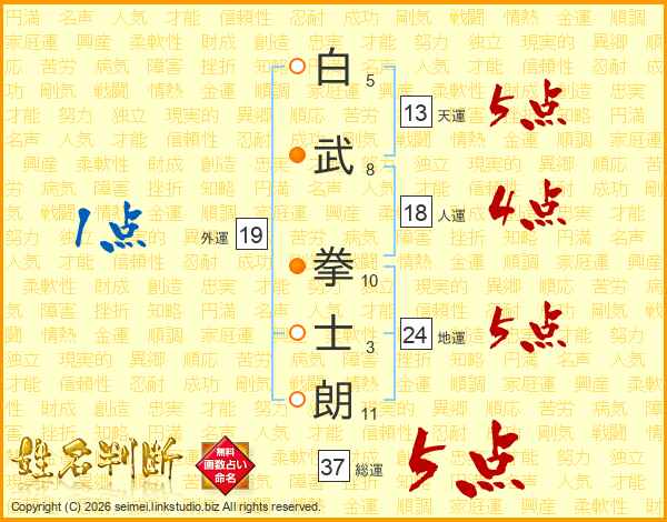 白武拳士朗さんの総運は37画の5点!
