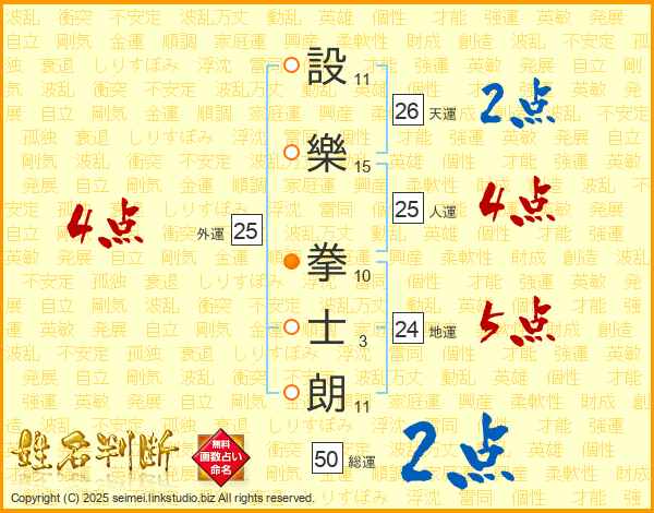 設樂拳士朗さんの人運は25画の4点!