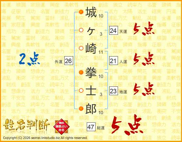 城ヶ崎拳士郎さんの総運は47画の5点!