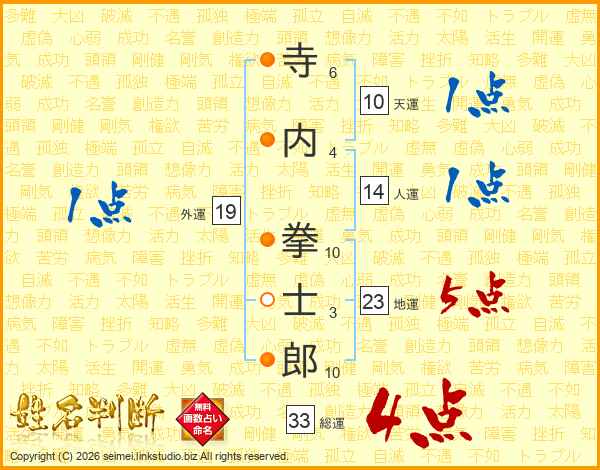 寺(6画)内(4画) 拳(10画)士(3画)郎(10画)