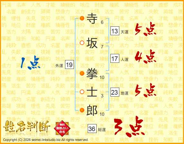 寺坂拳士郎さんの総運は36画の3点!