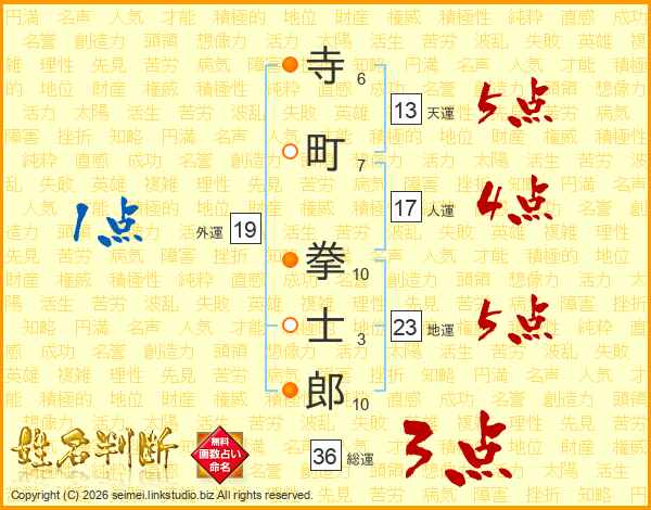 寺(6画)町(7画) 拳(10画)士(3画)郎(10画)
