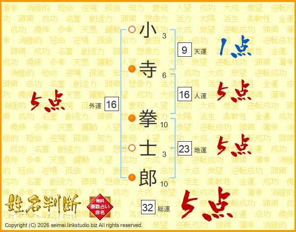 小寺拳士郎さんの総運は32画の5点!