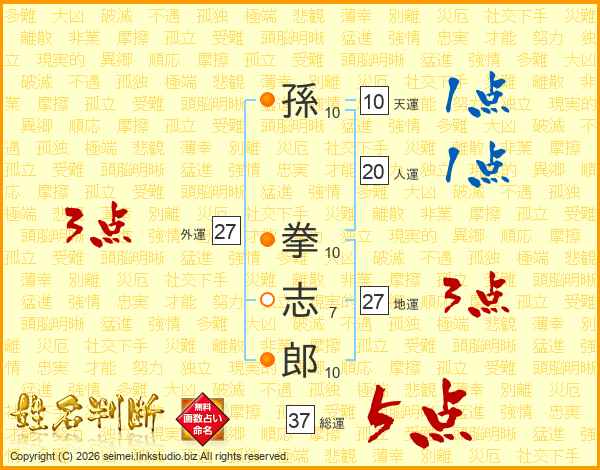 孫(10画) 拳(10画)志(7画)郎(10画)