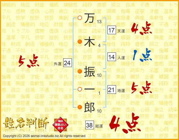 万木振一郎さんの総運は38画の4点!