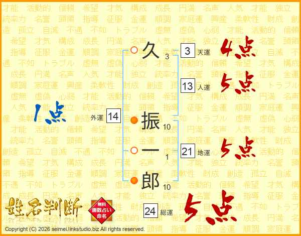 久振一郎さんの総運は24画の5点!