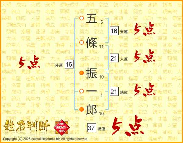 五條振一郎さんの総運は37画の5点!