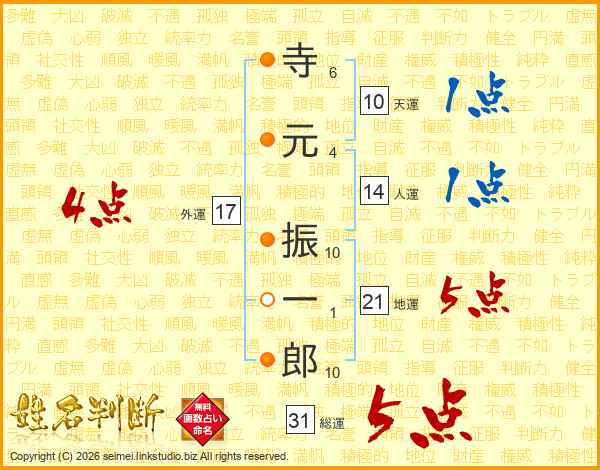 寺(6画)元(4画) 振(10画)一(1画)郎(10画)