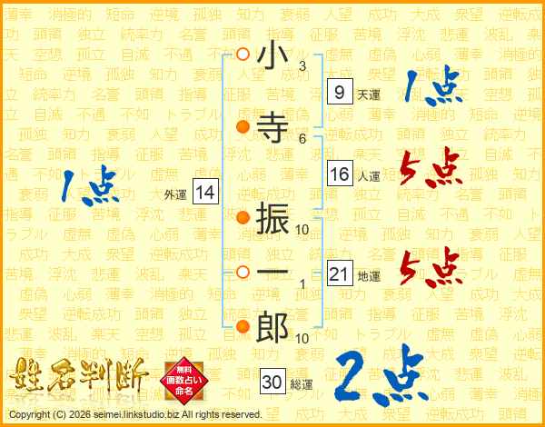 小寺振一郎さんの総運は30画の2点!