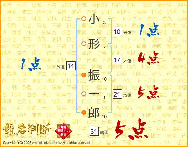 小(3画)形(7画) 振(10画)一(1画)郎(10画)