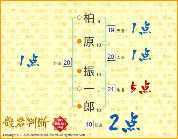 柏原振一郎さんの地運は21画の5点!