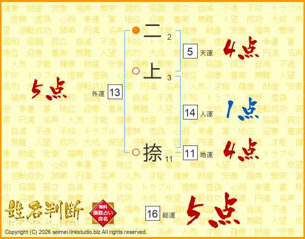 二上捺さんの総運は16画の5点!