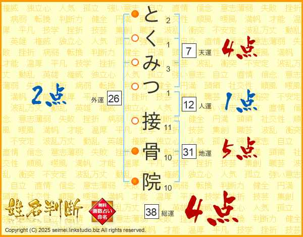と(2画)く(1画)み(3画)つ(1画) 接(11画)骨(10画)院(10画)