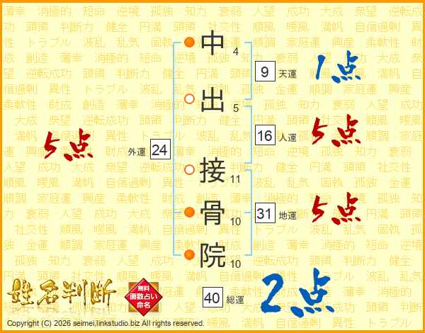 中出接骨院さんの総運は40画の2点!