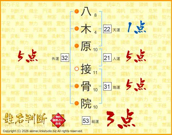 八木原接骨院さんの総運は53画の3点!