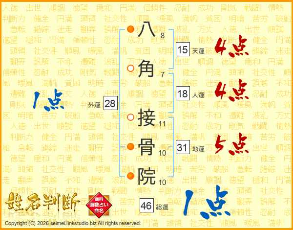 八(8画)角(7画) 接(11画)骨(10画)院(10画)