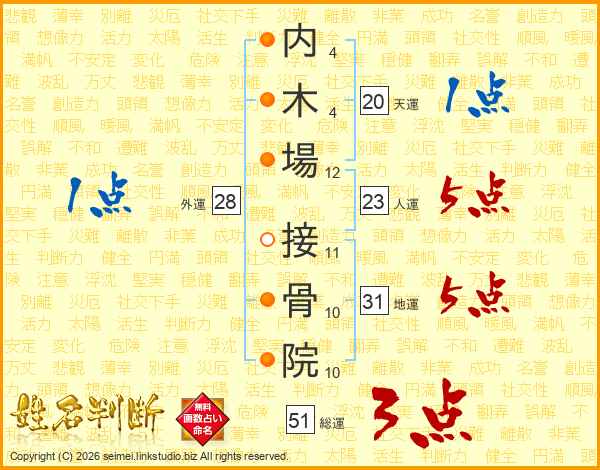 内木場接骨院さんの総運は51画の3点!