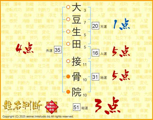 大(3画)豆(7画)生(5画)田(5画) 接(11画)骨(10画)院(10画)