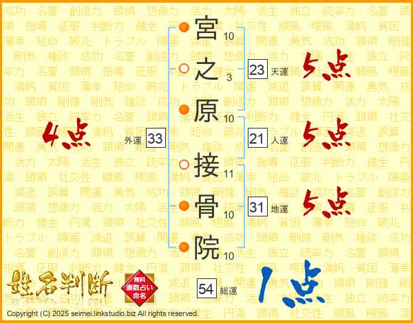 宮(10画)之(3画)原(10画) 接(11画)骨(10画)院(10画)