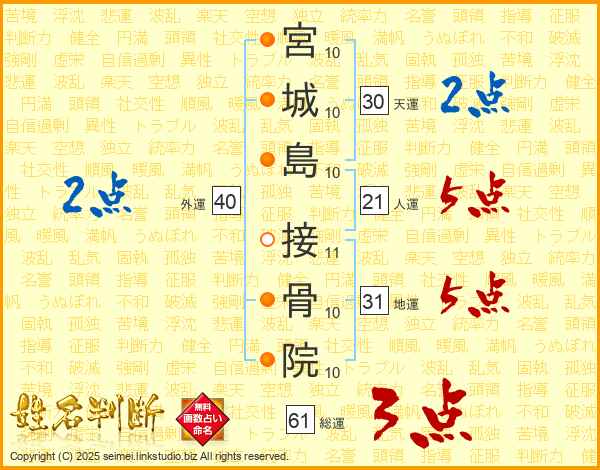 宮(10画)城(10画)島(10画) 接(11画)骨(10画)院(10画)