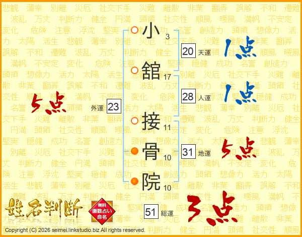 小(3画)舘(17画) 接(11画)骨(10画)院(10画)
