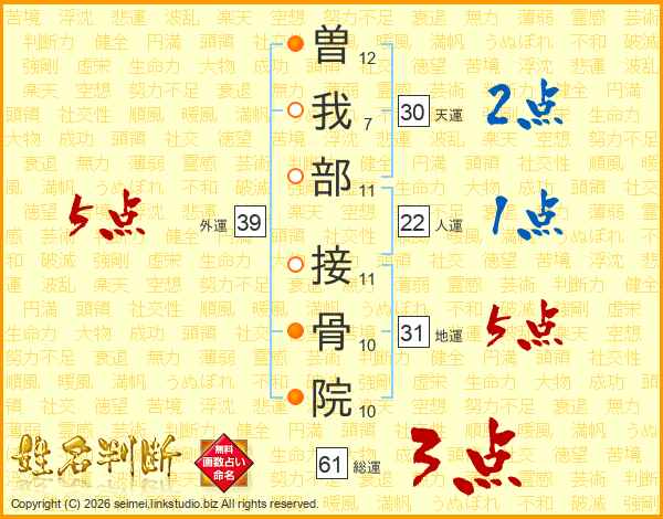 曽我部接骨院さんの総運は61画の3点!