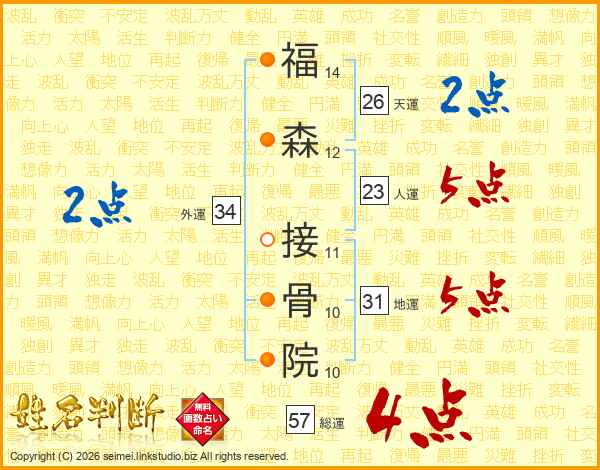 福森接骨院さんの総運は57画の4点!