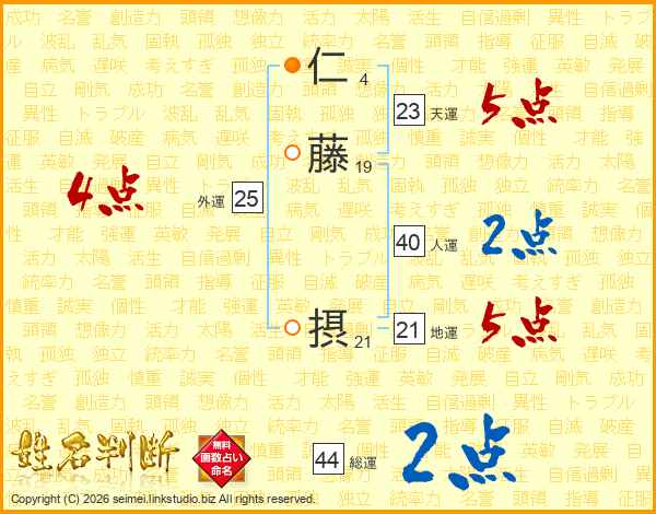 仁藤摂さんの総運は44画の2点!