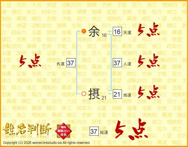 余摂さんの総運は37画の5点!