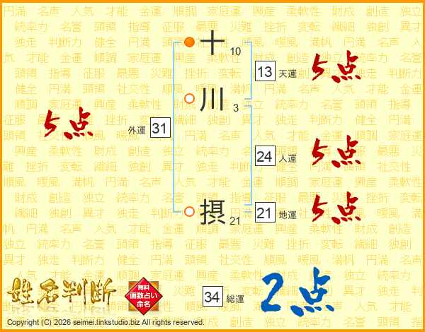 十川摂さんの地運は21画の5点!