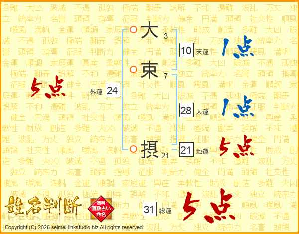 大束摂さんの地運は21画の5点!