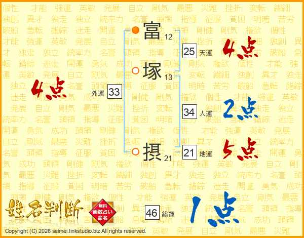 富塚摂さんの天運は25画の4点!