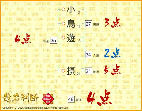 小鳥遊摂さんの総運は48画の4点!