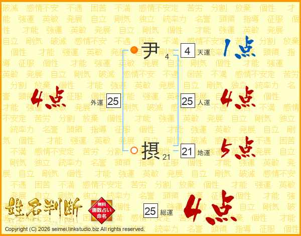 尹摂さんの総運は25画の4点!