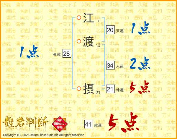 江渡摂さんの総運は41画の5点!