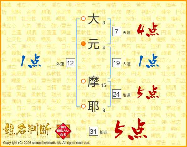 大元摩耶さんの総運は31画の5点!