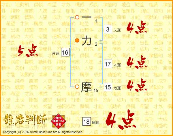 一力摩さんの総運は18画の4点!