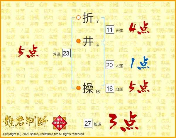 折井操さんの総運は27画の3点!