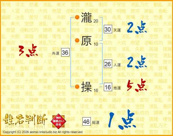 瀧原操さんの総運は46画の1点!