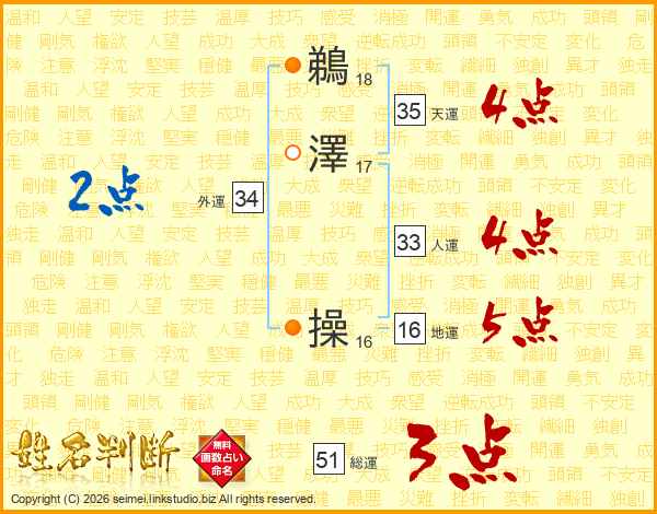 鵜澤操さんの人運は33画の4点!
