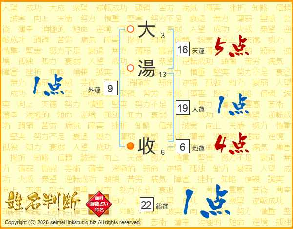 大湯收さんの天運は16画の5点!