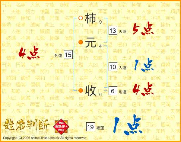 柿元收さんの天運は13画の5点!
