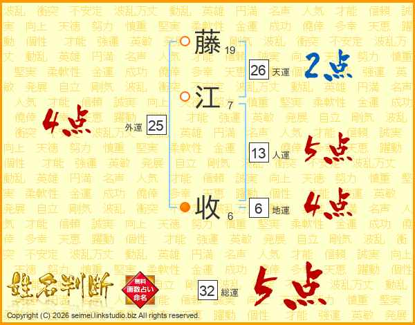 藤江收さんの天運は26画の2点!