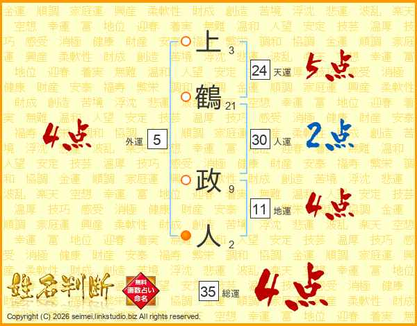 上鶴政人さんの総運は35画の4点!
