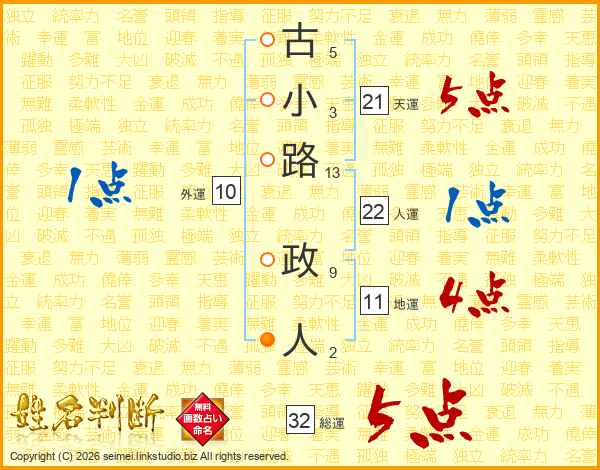 古小路政人さんの総運は32画の5点!