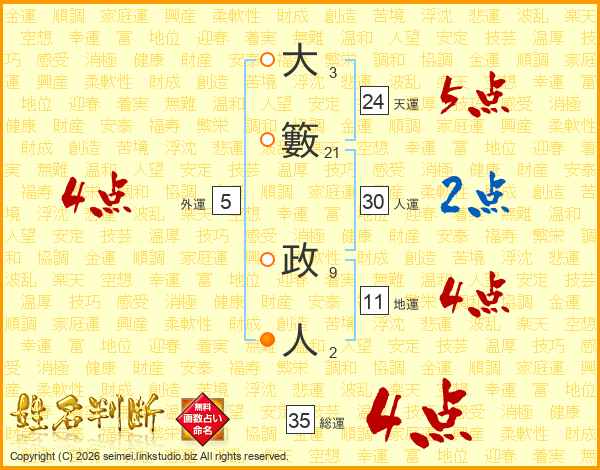 大籔政人さんの総運は35画の4点!