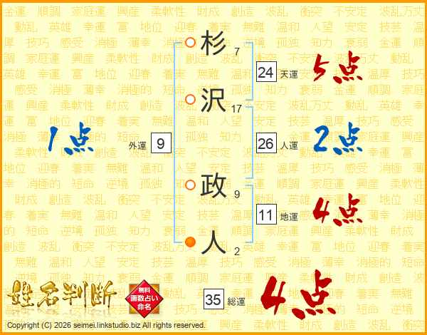 杉沢政人さんの総運は35画の4点!