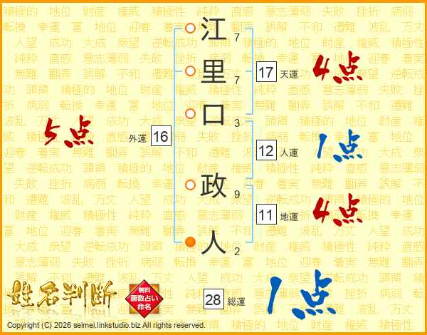 江里口政人さんの総運は28画の1点!